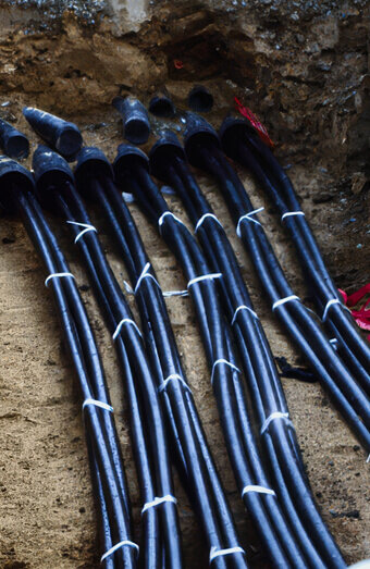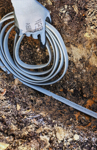 We connect new properties to the electricity network using underground service cables from the nearest pillar or pit, including all trenching, conduit, and terminations.